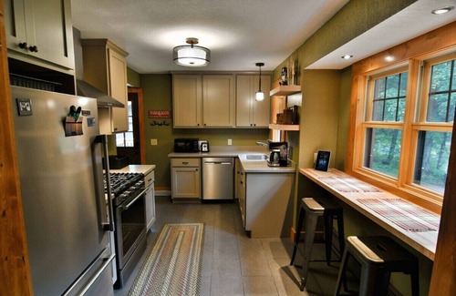 Arrowwood Lodge is perfect for a couple's getaway. A cozy Northwoods 1 bedroom, 1 bath cabin only one block from Lake Namakagon and the boat landing on Garden Lake. The fully equipped kitchen includes a stainless steel refrigerator, gas stove, and dishwasher. The counter seating in the kitchen makes a perfect spot for coffee and breakfast.