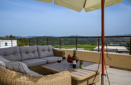 Best-rates for the Arsithea Villa starts from $245 per night with includes Parking, Pet Friendly, Bedding/Linens, Wellness Facilities, Laundry, TV, View, Sports/Activities, Fireplace/Heating, Hot Tub, Internet, Kitchen, Designated Smoking Area, Balcony/Terrace, Air Conditioner, Ocean View, Entertainment, Barbecue/Outdoor Cooking, Child Friendly with all other amenities. Perfect for Weddings is committed to ensuring every guest experiences a comfortable and extraordinary stay, whether planning a romantic getaway, a honeymoon, a pet-friendly stay, or celebrating with the entire wedding party.