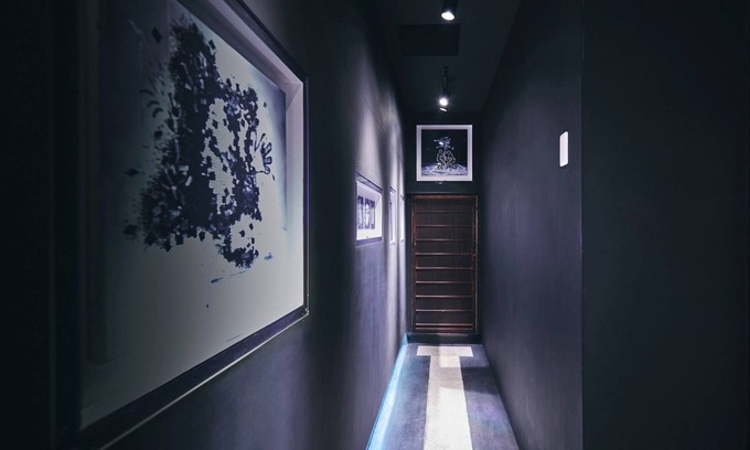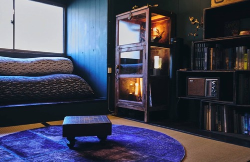 Modern Machiya Komorebi is an old folk house that has been renovated with the theme of an exciting and piercing underground space The two mandalas drawn in each bedroom by the collaboration of two artists create a unique space and the works are exhibited in the gallery space