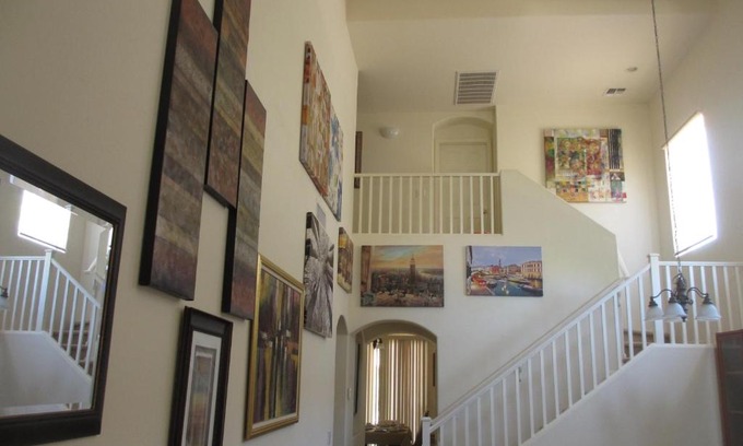 Art Gallery Vacation House offers accommodations in Gilbert, 30 miles from Copper Square and 20 miles from Sea Life Arizona. The air-conditioned accommodation is 29 miles from Phoenix Convention Center, and guests can benefit from private parking available on site and free Wifi. The property features a children's playground and outdoor furniture. Featuring a patio and garden views, the spacious vacation home includes 5 bedrooms, 2 living rooms, satellite flat-screen TV, an equipped kitchen, and 3 bathrooms with a bath and a shower. Guests can enjoy an ambient stay in their soundproof room with tiled floors and a fireplace. The vacation home offers bed linen, towels, and laundry service. There is a garden with a barbecue at this property, and guests can go hiking nearby. Hall of Flame Firefighting Museum is 24 miles from the vacation home, while Phoenix Zoo is 24 miles from the property. Phoenix-Mesa Gateway Airport is 8.7 miles away.