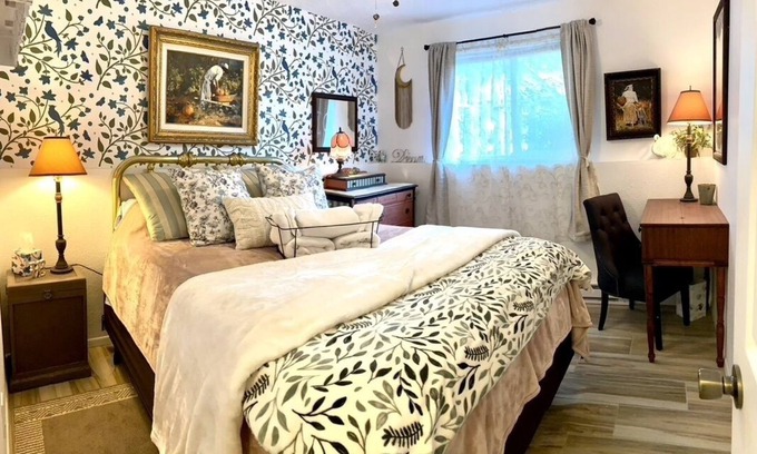 ArtHouse Down is a stylish & cozy ADULT space (not suitable for children/infants) with unique character, outdoor living area, & all the basics. Located close to downtown in the highly desirable & eclectic Perry District, with cafes, pubs, shops, music, Farmer’s Market, parks, & bus service. ArtHouse Down is designed to inspire the mind & delight the eye, focus on comfort, & display the unique hand-crafted furniture & artwork. We welcome responsible dog owners at downstairs unit--Art House Down.