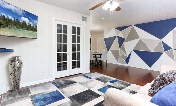 Welcome to our Art inspired home that’s Modernly Furnished with a 55” Flat inch Tv in the livingroom for you and the family to sit back & enjoy a movie night together. A fully furnished kitchen Which leads to the back patio where you have access to the grill to Enjoy with family & friends. When your finally ready to get tucked into bed you will sink into a 10 inch Mattress with an extra soft breathable & cooling bed sheets that have fluffy pillows that feel like your sleeping on clouds.