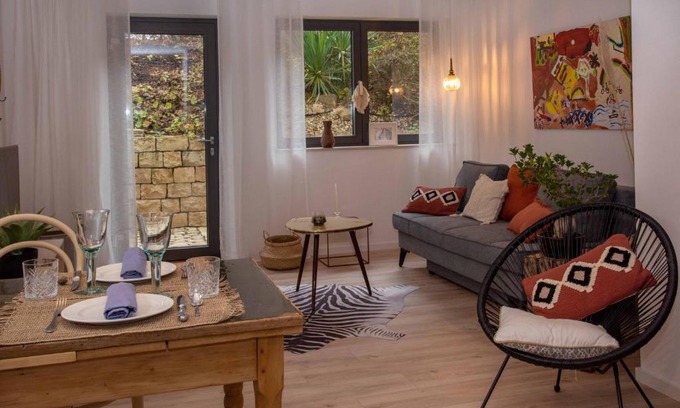 The apartment features free WiFi, a fully equipped kitchen with a dishwasher, and a washing machine. Additional amenities include a sofa bed, TV, and a private entrance.Convenient Location