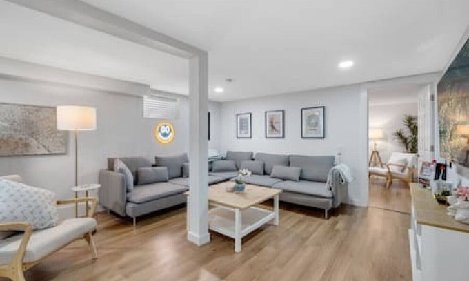 With 2 queen beds and a huge couch, we can comfortably accommodate up to 6 guests. Unwind in this beautiful space that adds a touch of sophistication to your stay. The spacious layout ensures everyone enjoys has a spot, creating a perfect retreat for families or friends.