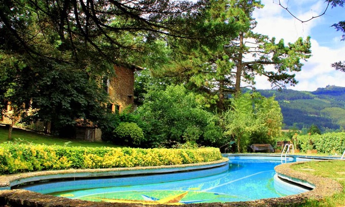 Artiñano Etxea has 7 double rooms, large rooms with a large window (ideal for groups), full kitchen, an old gate, swimming pool and some curiosities such as a library that connects two rooms (very practical for parents with children) or a chapel where formerly masses were given. All this surrounded by a garden of tall trees designed in 1914 by an English landscaper, which houses a large pool, which makes the place a very intimate and pleasant space. The owners live on the third floor of the property with our cat that roams the area. However, the only thing that is shared with customers is the access stairs to the rooms.
