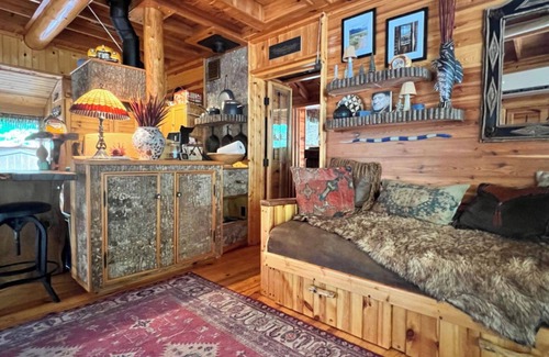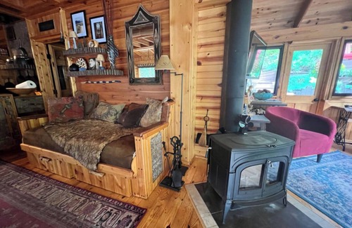 This handcrafted, artisan cabin is nestled in the Blue Ridge Mountains, one hour north of Asheville and 15 minutes from Penland School of Craft.