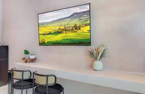 Includes WiFi, Smart TVs, ironing set and starter toiletries (shampoo, conditioner and body soap). Note: Washcloths and kitchen towels not included. A starter pack of disposable cups, cutlery and plates are provided.