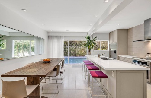 A cozy Miami retreat with an artist’s soul. Terrazzo floors lead through airy living spaces, from the raw wood dining table to an open kitchen with a generous island overlooking a private ivy-draped pool and lush garden. Spacious bedrooms, a separate TV lounge, and a sunlit living room make this thoughtfully designed home your perfect Miami escape.