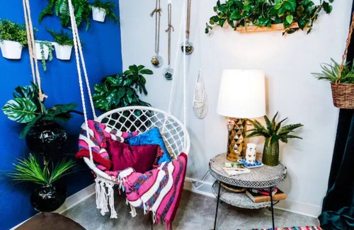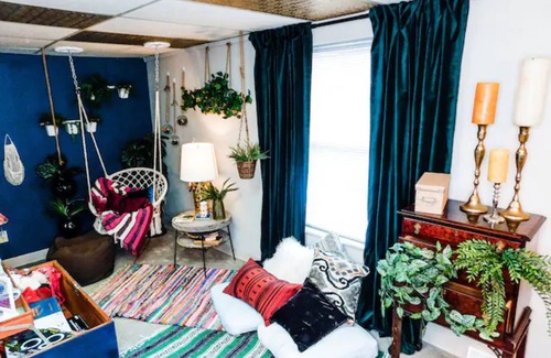Artistic and Creative Vibe with Indoor Swing 2 Blocks to Downtown & near SEMO is located in Cape Girardeau. Artistic and Creative Vibe with Indoor Swing 2 Blocks to Downtown & near SEMO provides accommodation, featuring Air Conditioner, Sports/Activities, Parking, among other amenities. This Apartment features Air Conditioner, Sports/Activities, Parking, to make your stay a comfortable one.