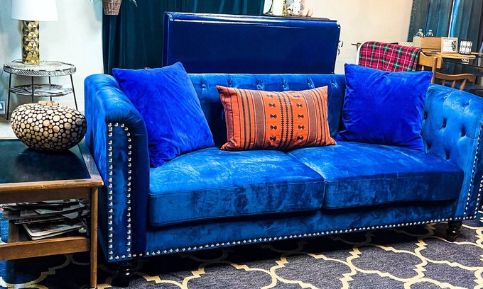 Arrive at a Brightly decorated Space with Artsy Walls and Bold Decor.