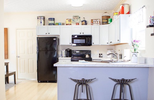 Located on the Monon Greenway in Carmel's Arts and Design District... steps from Restaurants, Gallery's and Shops. Other dinning and shopping destinations are easily reached by the Monon - walking or biking. Condo includes a selection of bikes. The three bedroom condo accommodates 4 adults and 2 children and is is fully equipped... two bedrooms have full size beds and one has Bunk Beds. the kitchen and dinning areas are spacious and accommodating. The great room is attractive and comfortable.