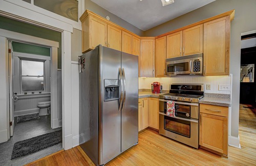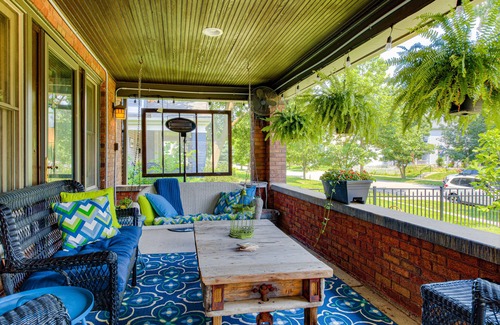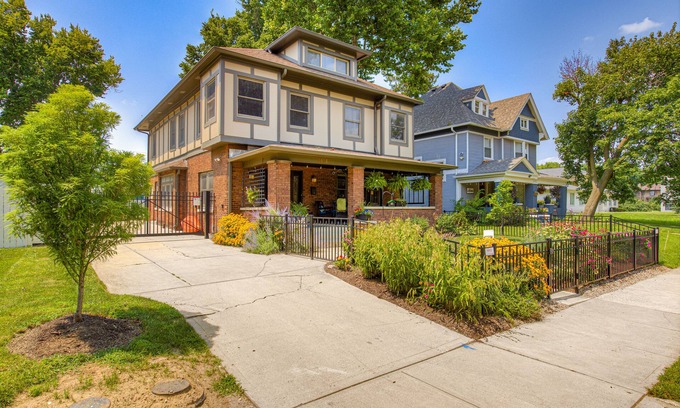 1 bedroom/1.5 bath on first floor in mid-town Indianapolis. Home has fully equipped kitchen, laundry and a fabulous front porch for enjoying outdoor space and relaxing. The home was built in 1890 with expert craftsmanship. Beautiful tiger oak stained trim and coffered ceilings with leaded glass inserts. Stained glass window in dining room. Built-ins and old world charm. The neighborhood is a family friendly diverse neighborhood. Great walkability to several local restaurants. 5 minute drive to Mass Ave, 8 minutes to downtown. 12 minutes to Lucas Oil Stadium.