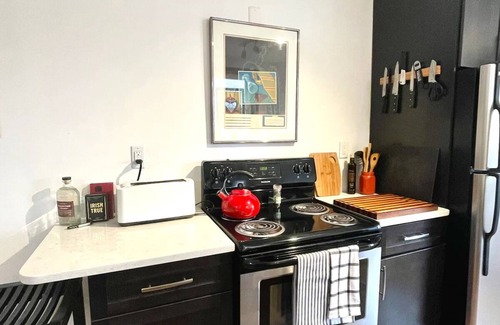 Artsy and eclectic space, perfect for cozy weekend getaways and exploring the city! Tons of original art and antique, quirky, charm to this space.