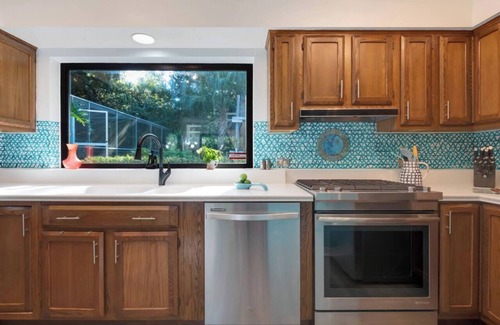 At this funky ranch home in desirable Indian Head Acres, mod meets whimsy—with plenty of space to relax and play, too. Swim in the screened pool, lounge around with pup in the fenced backyard, or watch the kids take over the treehouse and swings. Inside, rooms are spacious and cozy. Pet-friendly and close to parks, trails, and downtown — it’s a perfect choice for a well-appointed, comfortable Tallahassee stay.