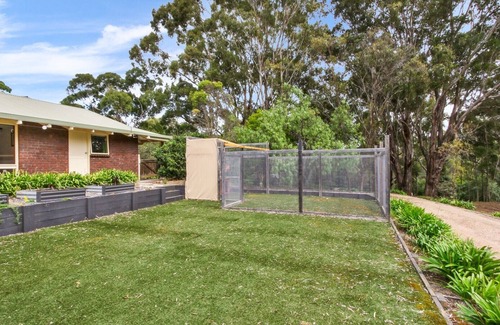 Aruma is a peaceful retreat set on 2 acres in Metung, offering a 3-bedroom house, a separate Granny Flat, and a Studio, ideal for multiple families. The property features expansive gardens, a private jetty (10-minute walk), and is pet-friendly. It includes amenities like a full kitchen, heating/cooling systems, entertainment options, and boat mooring nearby. The home accommodates up to 14 guests, with various bedding configurations. Aruma is a short drive from Metung Village, providing a relaxing environment for families or groups.