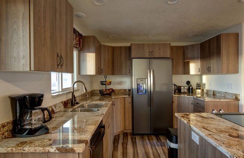 Upstairs you will find comfortable seating and a 55" television with Dish network and high-speed internet. Just off the kitchen, you will find a built-in BBQ with an outdoor dining area. Downstairs features an entertainment area with a game room with a foosball table, an air hockey table, and board and card games, a small kitchenette (bar, microwave, and full-size fridge). The full-size washer, dryer, and iron with ironing board are in the closet off the game room.