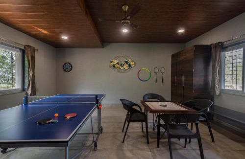 Asanjo Villa by VEO - Part of StayVista offers accommodations in Mulshi, 25 miles from University of Pune and 26 miles from Fergusson College. This property offers a private pool, free Wifi, and free private parking. On clear days, guests can head outside to enjoy the villa's outdoor fireplace or simply kick back and relax. Opening onto a patio with pool views, the spacious air-conditioned villa consists of 6 bedrooms. Providing a balcony with mountain views, this villa also offers a flat-screen TV, a well-equipped kitchen with an oven, a microwave, and a fridge, as well as 6 bathrooms with a bath and free toiletries. The villa offers bed linen, towels, and daily room service. Dining options are available close to the villa. For guests with children, Asanjo Villa by VEO - Part of StayVista provides an indoor play area. The villa has a picnic area where you can spend the day outdoors. Raja Dinkar Kelkar Museum is 27 miles from the accommodation, while Srimant Dagadusheth Halwai Ganapati Temple is 27 miles away. Pune International Airport is 35 miles from the property.