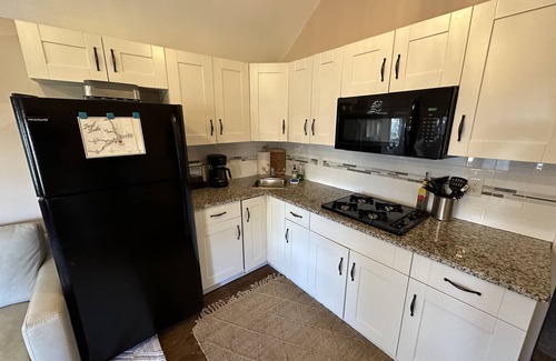 Totally renovated, beautiful cottage in vibrant Asbury Park, NJ. Sleeps 2. Safe 5th Avenue address. Six blocks to beach (swimming, surfing, boardwalk), 1 block to Deal lake (canoeing, paddle boarding). One bedroom , one bath cottage. Living room, new leather sofa bed (sleeps two). Fully equipped kitchen, air-conditioning. heating, WiFi, TV. Modern, glass door shower. Computer desk & chair and external monitor. Separate entrance & parking. Beach chairs & towels. Two beach passes. Outdoor shower. Sip coffee or an umbrella drink on your own porch. Outdoor grill. Shops, restaurants, yoga studio and coffee spot two blocks from the cottage in the Sunset Point block.