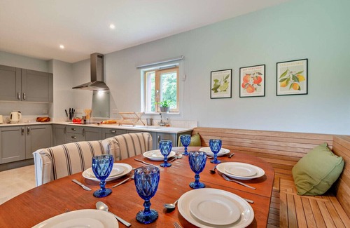 Part of a complex of 6 striking properties that take inspiration from Scandinavian design, enter this attached house via the private entrance door. Once inside you'll be met with a welcoming entrance hall, with space to leave muddy boots and hang your coat. There is a separate WC and utility area before you reach the stunning open-plan kitchen/diner, which leads around to the lounge. Cleverly zoned into separate areas for cooking, dining and relaxing in comfort, this is the perfect sociable space to come together after a day spent exploring. Light the wood burner and watch your favourite shows on the Smart TV or enjoy a leisurely meal at the table. When the day is done tuck up in the super-king-size ground floor bedroom, with accessible shower room just opposite or head upstairs where you'll find the remaining two bedrooms, including a dramatic 4 poster with lovely views. There is a shower room on this floor.