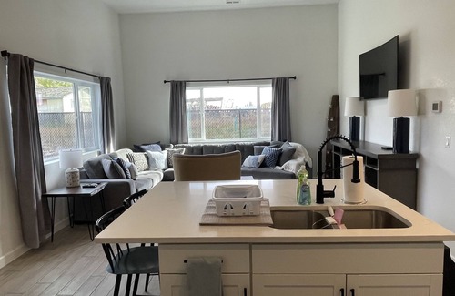 Come relax and enjoy Grant County in this one bedroom bungalow. It has a King size bed in the master bedroom. The bed is comfortable and each side individually adjusts. The living room hosts a hide a bed couch that can fit two people and electric fireplace. The bungalow sits across the street from Moses Lake. The best boat launch is .5 miles away at Blue Herron Park. It is in between two golf courses, literally within .5 miles! The sand dunes is 1.5 miles away. There is plenty of parking to lodge several cars and or toys. Safe and secure parking. The bungalow is fully furnished with a modern twist. The yard is fully fenced in with a barbeque, outdoor table and propane fire pit. Beautiful inside and out!