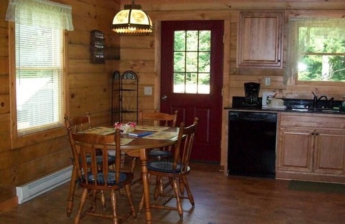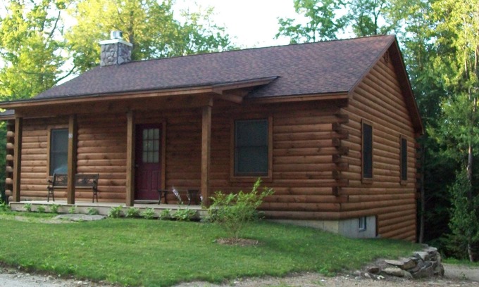 Brand new log cabin. Charming, quiet with privacy. If peace and tranquility are one of your vacation objectives, then this is the home for you! Enjoy cooking on the grill while having an evening cocktail while the kids take advantage of the board games which are provided. You can enjoy a dip in the lake with access to the private, shared beach.