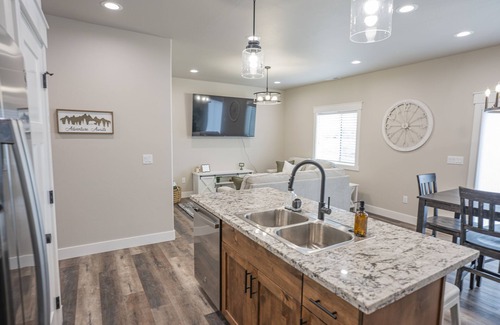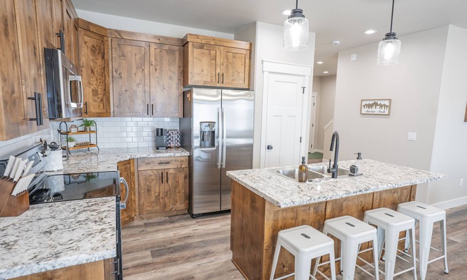 Ashton Adventure Base with Ping Pong and BBQ offers a unique and spacious accommodation option in Ashton, Idaho, making it an ideal location for wedding stays. This modern townhouse is designed to host large groups while providing comfort and convenience for your special occasion.