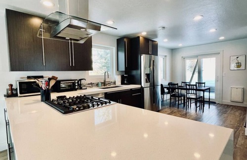 Experience the charm of our Park City cabin, nestled near top ski resorts and just 23 minutes from SLC Airport. Remodeled in 2018, this mountain-chic cabin boasts a fully-equipped kitchen, beautiful new bathrooms, a cozy wood-burning stove, and a new private hot tub. Perfect for taking in all the amazing mountain views! Conveniently located, the cabin provides super-easy winter access and is 5-10 min from grocery stores, restaurants, Woodward, golf, Park City Outlets and more. Book today!