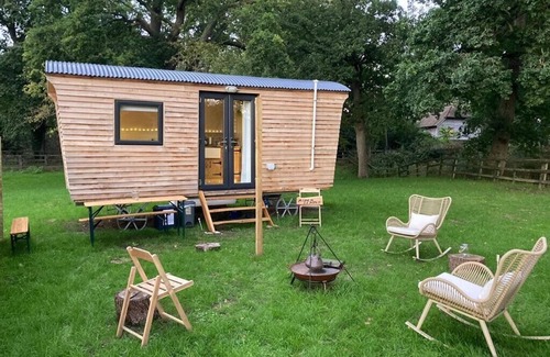 Traditional Sussex-style shepherd's hut, with everything you'll need for a secluded stay. Newly renovated, and situated in a beautiful glade surrounded by mature oak trees, view of The South Downs, and perfect for star gazing.