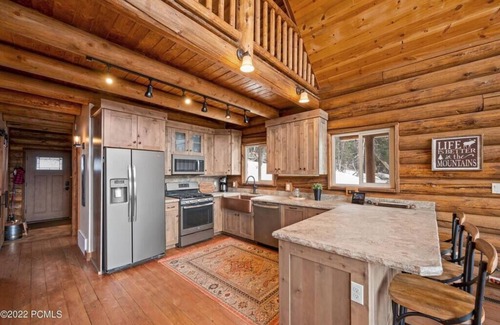 Escape to the perfect winter getaway at this beautiful cabin built in 2018. Located just 15 miles from Park City Ski Resort, this cozy retreat offers stunning mountain views and a relaxing hot tub. Experience the magic of watching the trees change colors as you unwind in this peaceful oasis. With its modern amenities and rustic charm, this cabin is the ideal destination for a memorable vacation. Whether you're hitting the slopes or simply seeking relaxation. Welcome to our spacious and newly built 4-bedroom, 3-bathroom house located near beautiful Park City ski resort. Our cabin can comfortably accommodate your whole family with plenty of space for everyone. The bedrooms are arranged as follows: one bedroom with a king bed, one bedroom with a queen bed, one bedroom with a queen bed, and one bedroom with 2 bunk beds that are twin beds. There is also a queen pull-out couch in the living room for additional sleeping options. The house features a hot tub for your relaxation and enjoyment. You can also have some fun in our arcade games area. The living room is equipped with a TV for your entertainment. Step out onto the deck and take in the stunning views of the surrounding mountains. There is plenty of parking space available for all guests. Whether you're planning a family vacation or a weekend getaway with friends, our house offers a spectacular and comfortable space for you to enjoy your time in the mountains. Book your stay with us today and create unforgettable memories. Guest will have access to the whole unit. I will be available for guests during their stay. Cabin in the mountains Cabin is off of a dirt road that can be somewhat rough in the summer, spring, and fall. In the winter you must have a 4-wheel drive or all-wheel drive vehicle with snow tires or chains. We do work with a rental company that will give guests a 10% discount for their rental just ask how. If booking in the wintertime, please make sure to have 4-wheel drive and snow tires. If getting a rental car, ask for chains to be included just in case you need them. This is a mountain that gets lots of snows it is important to be prepared for it. Ask us about our 4-wheel drive rental service we work with to get guests the right vehicle at a great price.