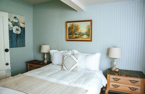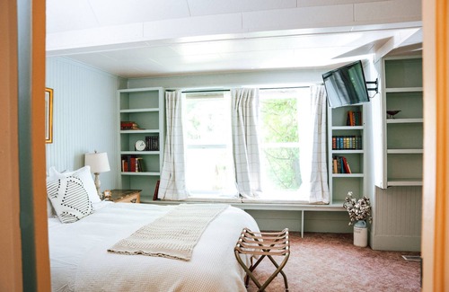 Aspen Room is an upstairs queen bedroom at the Bluebird Inn with lots of Victorian charm. Enjoy the historic house and grounds, built in the 1870s, and a cherished house in Etna. Read a book in the shade, enjoy a coffee on the porch, or take a short walk to downtown Etna.