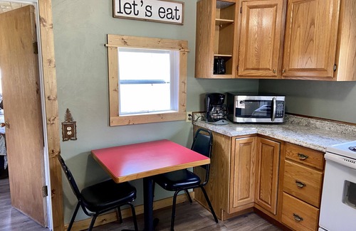 This is a perfect couples retreat. It was recently remodeled and has everything you need. If you are looking for an enjoyable getaway in a beautiful setting, this is the property for you. It is located on a unique property with 10 RV spots (rented for the whole season), multiple cabins and a 16-slip boat dock all located on 26 private wooded acres surrounded by Forest Service. Only guests registered on your reservation are allowed on the property so please make sure you account for your entire group when booking. If you have people that are not staying on the property that you would like to have visit, please get prior approval. Other cabins on the property are 1323061, 1346673,1346734, 1346673, 1417055, 1521170 and 2641906. There is a small deck with a great view of the lake where you can enjoy the picturesque views or simply relax. The lake is within walking distance and a boat slip may be available for an additional charge (please contact the owner for availability). The cozy cabin has a variety of games and activities. There are endless recreation opportunities in the area including hiking, biking, boating, swimming, kayaking, watersports, and golf among others.