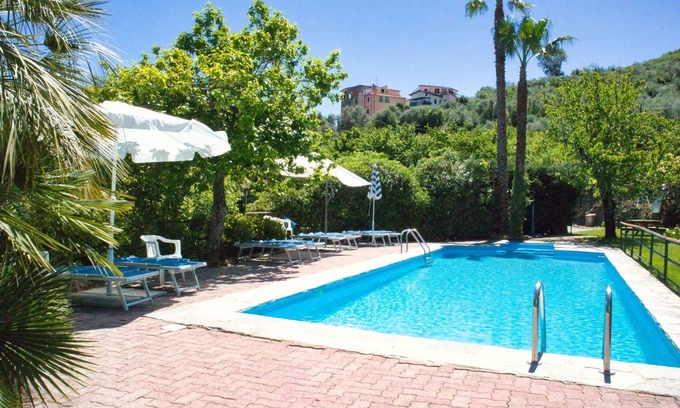 Agriturismo "Asplanato", 2 storeys, surrounded by trees, meadows and vineyards. 6 apartments in the residence. In the district of Lecchiore 5.5 km from the centre of Dolcedo, 12 km from the centre of Imperia, 39 km from the centre of San Remo, in a quiet, sunny position, 200 m from the edge of the forest, 15 km from the sea, 500 m from the lake, in the countryside. For shared use: beautiful, well-kept garden 1'000 m2 (not fenced) with flowers and trees, meadow, swimming pool (12 x 4 m, seasonal availability: 01.Apr. - 30.Oct.). Outdoor shower, pergola, terrace, garden furniture, barbecue. In the complex: washing machine (for shared use). 30 m footpath to the house. Parking (for 6 cars) on the premises. Shop 5.5 km, supermarket 12 km, restaurant 5.5 km, bar 5.5 km, bakery 5.5 km, bus stop "Lecchiore" 300 m, sandy beach "Imperia" 17 km pebble beach "Imperia" 12 km, bathing lake "Laghetti di Lecchiore" 800 m. Marina 17 km, riding stable 7 km, cycle lane 15 km. Please note: car recommended. Local sale of farm products. Loading and unloading of baggage is possible at the holiday house. Additional accommodations can be booked.
