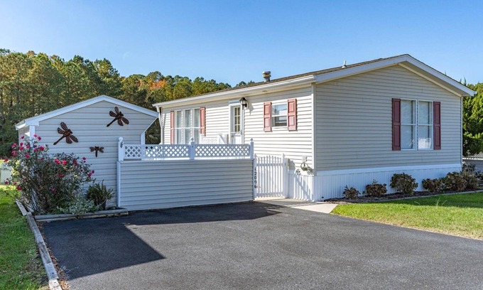 Located within the private gated community of Assateague Pointe, this beautifully furnished double-wide home sits on a stocked fishing pond and offers all the comforts of home. The property includes a full kitchen, washer and dryer, two TVs, a DVD player, and central A/C. The community features amenities for all ages, including two large outdoor pools, a recreation room, a fishing pier into the bay, stocked fishing ponds, complimentary paddle boats, a basketball half court, playgrounds, and picnic areas. Conveniently located just minutes from the beaches of Assateague Island National Park and the Ocean City beach and boardwalk, this home provides a great base for your coastal vacation. Occupancy is limited to six guests. This is a non-smoking property, and pets are not permitted. Mini-week rentals are available all summer. Please note: sheets, towels, paper products, and cleaning supplies are not provided. A linen package, including sheets and towels, is available to rent for an additional charge.