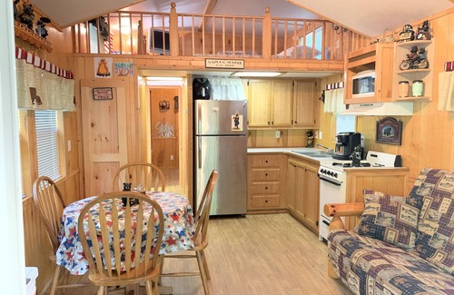 Location, Location, Location: This Unique Caboose style Park home is centrally located in the beautiful and picturesque town of Naple Maine. Come use our association beach located on Sebago Lake, you can rent a boat or bring along your own, association boat ramp available at no charge. The cabin is surrounded by the crystal-clear waters of Sebago Lake, Trickey pond, Long lake and Brandy Pond. Rent a boat at the nearby Marinas or take a stroll downtown while visiting the many shops and restaurants on the causeway. The town boasts with activities, rent a jet ski, take a ride in the seaplane or just sit and relax in the serenity of the lakes and mountains. Supermarket 5 min away. Casino 20 minutes away North Conway as well as the Maine Coastline is with-in 40 minutes. If coming for fall foliage you will not be disappointed, stop by Fryberg fair, check for dates, stroll into many of the antique shops in the area, go apple picking or visit a farmstands, something to do for everyone. Adorable 1 bedroom with a loft that your kids will love. Bringing extra guest- don't worry there is a great futon in the living area that pulls out to a double bed. So much fun for everyone.