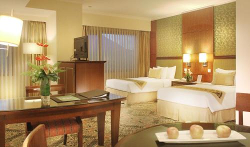 Located along Cihampelas Street in central Bandung, the Aston Tropicana Hotel has easy access to shopping areas. The hotel features an outdoor pool, a spa and a fitness center. The Aston Tropicana’s air-conditioned rooms have carpeted floors and a small sitting area. Each room has satellite TV, a safe, and tea/coffee-making facilities. Private bathrooms are fitted with a bathtub and a shower. Tropicana Karaoke is great for an evening with friends. The hotel features the convenience of a 24-hour front desk and a business center. It also provides free Wi-Fi in rooms and free parking on site. A breakfast buffet is served daily. Guests can enjoy meals at Lemongrass Restaurant, and drinks are served at the Coconut Lounge. Room service is available 24 hours a day. The Aston Tropicana Hotel Bandung is approximately 2 miles from Husein Sastranegara International Airport. Airport pick-up can be arranged.