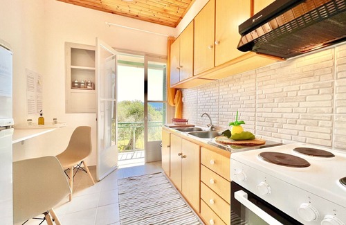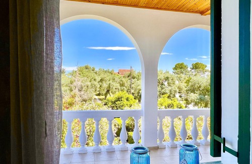 Welcoming, beautifully located, cheerful, spacious and air-conditioned: Astra Beach House ticks all the boxes for a relaxing and inexpensive holiday close to one of the most lovely sandy beaches of Corfu: Astrakeri. This large, renovated, detached holiday home sleeps up to 18 guests in 10 bedrooms and is surrounded by a heaven of nature, yet being located just 2 min walk away from the beach (and an excellent beachfront taverna). All these peculiarities turn Astra Beach House in the perfect destination for families or friends looking for great value for money and a relaxing holiday experience in deep contact with the most unspoiled nature of Corfu. Astra Beach House is a detached holiday villa, surrounded by extensive private grounds with lawn, shrubs, flowers, ancient olive trees. The accommodation is set over 2 floors (connected via an external staircase) . The interiors, cozy and welcoming, comprise in total 10 bedrooms, 4 bathrooms, and a fully equipped kitchen with dining area. The two floors of Astra Beach house are identical and feature, each, 5 air-conditioned bedrooms (2 double bedrooms, 2 twin bedrooms, 1 single bedroom), a small kitchenette ideal for preparation of tea or snacks, and 2 family shower rooms. The layout of the villa and the truly huge gardens turn this property into the perfect choice for groups of friends or large families wanting great privacy at unbeatable rates. Outdoor dining areas and seating areas are available both in the front terrace and in the shaded kiosk at the back of the garden, where a fully equipped kitchen is also available (a barbecue is provided) therefore guests will be able to enjoy delicious meal and spend time together pampered by the refreshing evening breeze of north Corfu. NOTES: for the convenience of our guests, the price quoted includes: Wi-fi internet, cleanings, linen/towels, air-conditioning. A refundable security deposit for damages (in cash) of euros 300 is required on arrival and refunded at the end of the stay as long as no damages are done to the house.GREEK STAY TAX (climate resilience tax): euro 2 per villa per night not included in the rental rate and payable locally.