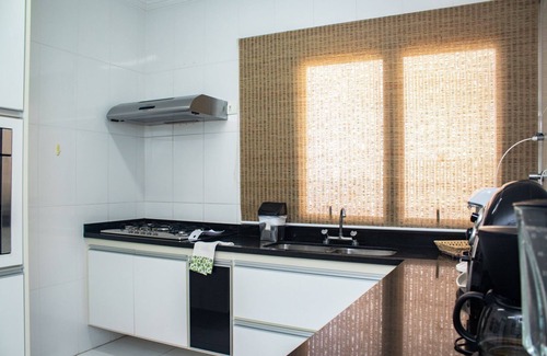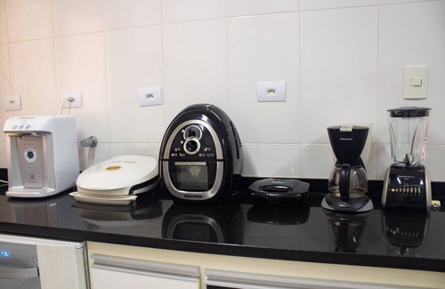 Nestled in Guarujá, this 4-bedroom, 4.5-bathroom apartment brings it all within your reach. Fans of nature and the outdoors will love being within a 5-minute walk of Asturias Beach and Jardim Asturias. Your feet will make short work of the 1-minute walk to Galhetas Lookout or the 11-minute walk to Praia do Tombo.