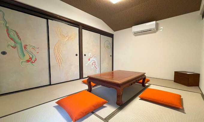 Providing free bikes, Asuka no yado-明日香の宿- provides accommodations in Asuka. This property offers access to a terrace, free private parking, and free Wifi. Guests can use a garden. The air-conditioned villa consists of 2 bedrooms, 3 living rooms, a fully equipped kitchenette with a microwave, and 1 bathroom with a bath and a hair dryer. Towels and bed linen are provided in the villa. For added privacy, the accommodation features a private entrance. Nara Station is 16 miles from the villa, while Subaru Hall is 19 miles away. Itami Airport is 40 miles from the property.