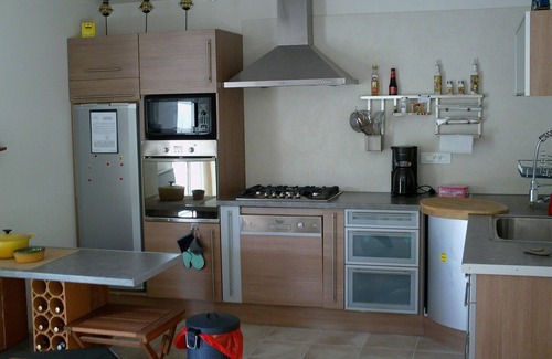 VILLA With swimming pool and wifi by box on a completely enclosed ground consisting as follows: An entrance through the living room with its kitchen incorporated and equipped (dishwasher-hotplates-oven-microwave, etc ..... ), a room with 1 bed 140, a room of water, a toilet. The living room opening onto the terrace-pool with garden furniture, deckchair.