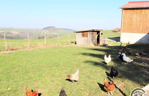 Farm-based gîte in little hamlet, in part of renovated building adjoining owners', farmers, house. Peaceful countryside setting, no buildings directly opposite. Accessed via private entrance hall on the ground floor (stairs leading to the 1st floor). 1st floor: corridor opening onto every rooms, living room with kitchen area / lounge area (double sofa bed) / dining area. 1 bedroom (2 single beds). Shower room. WC. Outdoors: gravelled courtyard, garden furniture, parking. Shared play area (climbing frame, swing, toboggan, wooden hut, sandpit). Loan of baby equipment (cot, highchair). On-site: private fishing lake (500 sq.m fishing possibilities). This accommodation is located near GR7 (long-distance hiking path), Tarare & Roanne motorway exits and "Lac des Sapins" (ecological swimming lake).