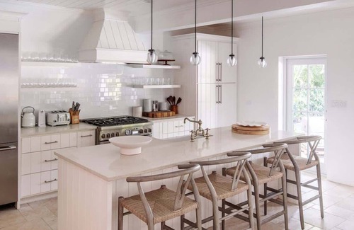 At Ease is an award winning 5 br 4 1/2 bath concierge driven luxury vacation rental in Dunmore Town,Harbour Island Bahamas just steps from our own private cabana on the pink sand beach. We make BOOKING EASY, and then plan all details for your family or group stay directly with our team, free of charge. The home is owned and designed by renowned interior designer Angela Harris showcasing her tile, furniture, bedding, linens, and art throughout the home. It has been featured in HGTV, Sunset, Coastal Living, and Parigold. The private backyardincludes a heated pool, a towel house, outdoor built-in grill, outdoor shower, patio dining, and a new pool bar with TV, beer keg cooler, ice machine, wine fridge and pink champagne fridge.