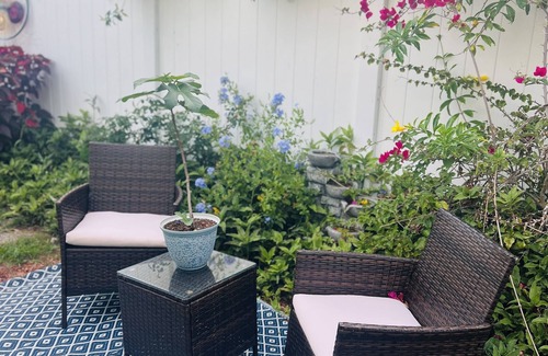 Built in 1955, the kitchen, bathrooms and living areas were renovated in 2019/2020. Very high quality impact resistant windows were installed in 2020 adding beauty, comfort and an extra measure of security to our cute little cottage! We also installed a new A/C unit and replaced all the duct work in 2020 and we replaced the roof in 2021. Our approximately 900 square foot cottage is cute, clean and provides all the amenities you need while you enjoy your stay on Florida's east coast. A king size bed in the master bedroom sleeps two. Two single beds in the second bedroom sleeps two. We have two large and comfortable oversized couches in the living room that sleep two more people, for a total of six people. We have a lovely screened in porch with a ceiling fan for comfort. In the side garden as an added bonus outdoor area, we have seating with a gas grill and fountain. Our kitchen is complete with enough pots, pans, cutlery, glassware and dishes to comfortably cook a home made meal for 6 people. A travel size shampoo, conditioner and body wash are provided in both bathrooms. A washer and dryer are located in a laundry room in the rear of the cottage. Detergent, bleach, and dryer sheets are provided for your convenience. In addition to bathroom towels we also provide beach towels. Assorted beach toys are also available. We have driveway parking with a car port. The driveway can accommodate 3 vehicles parked one in front of the other. Street parking is not permitted.