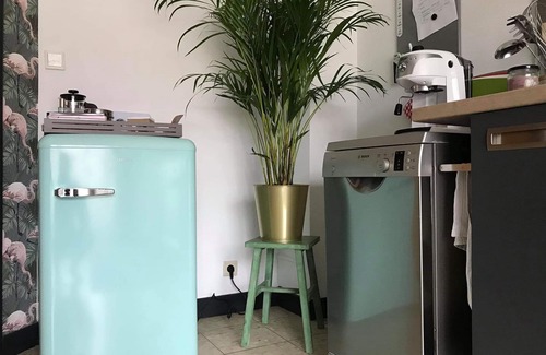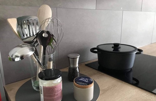 Cozy apartment for two people, at the foot of the Castle, a staircase separates you from the city and its restaurants and shops. By reservation, you can benefit from a private city or castle visit, night or day: € 50 / € 60; € 65 / € 80 and if you come by motorbike, Semois half day or full day circuit € 30 / € 40. Walking maps available. Equipped kitchen....
