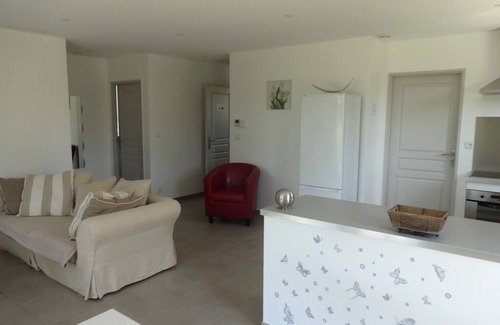 For lovers of peace and the countryside, in the shade of a large lime tree, air-conditioned comfortable accommodation consisting of two double bedrooms, fully equipped kitchen opening onto living room, bathroom and separate wc.