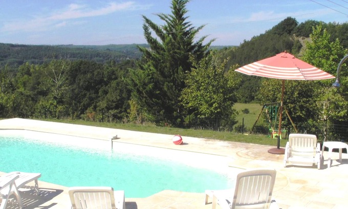 The cottage is old restored stone facing south with panoramic views over countryside. It is located 1.7km from the village with all amenities first and at 1. 8 km from the famous pebble beach on the Dordogne River.