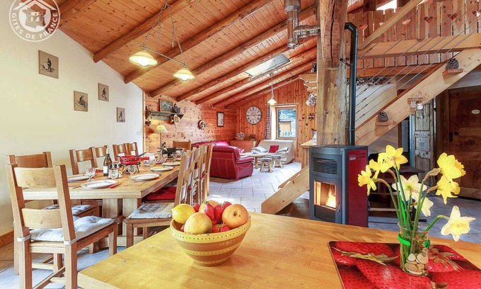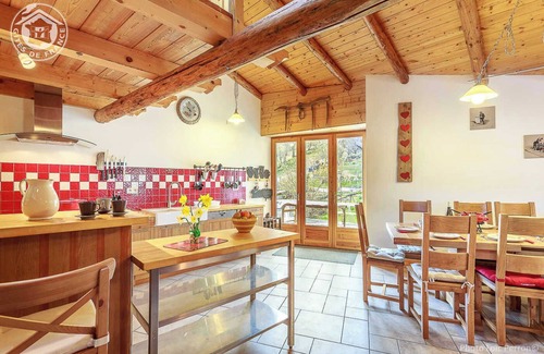 Terraced house. Elevated ground floor + 1st FLR. : living room-kitchen-area console (XBOX), Wifi, 3 bedrooms (3 beds 2 p. including 1 conv), 2 mezz. (1 bed 2 p / 4 beds 1 p. dt 1 x 110cm), 2 bathroom (shower + bath/shower). Sauna (4 p.). Terrace + ground. Ski/Orelle Val-thorens/3 valleys 12 km, the Norma 13 km. 20km cross-country skiing. Pool 9km. Water 13km. Private parking 200 m winter. Farm country from the 18th century renovated 12 km from the gondola of Orelle (liaison) 3 valleys. Charming typical village preserved. Very quiet. Beautiful natural setting (prairies and forests). Great comfort. Ultra cozy. Warm mountain stamp. Lots of charm. Terrace expo. Landscaped garden. Superb views.