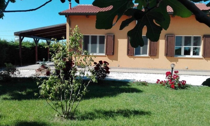 Whole house with private garden. Just 500 metres from the Rimini Nord motorway exit, a 5-minute drive from the Trade Fair and the sea, in the peace and beauty of our hinterland is the house set in a large enclosed garden, with porticoes equipped for barbeques, breakfasts, lunches and dinners in the open air, with chairs and deckchairs for relaxing in the sun.
