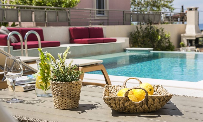 - Villa Eleftheria: 4 bedrooms for up to 9 adults, pool and outstanding 180° views