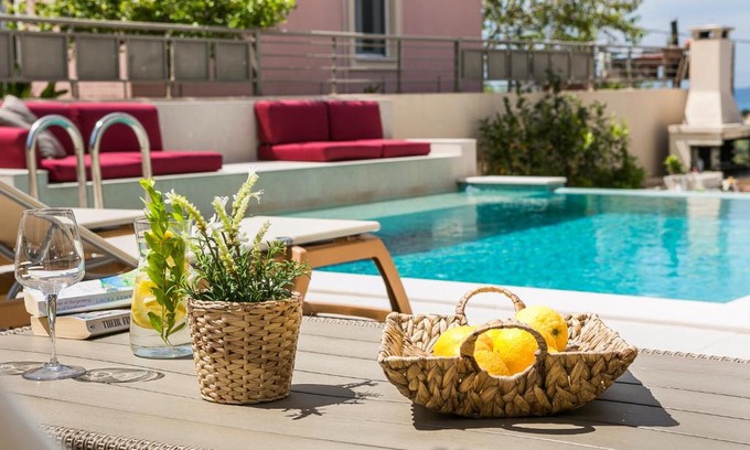 - Villa Eleftheria: 4 bedrooms for up to 9 adults, pool and outstanding 180° views