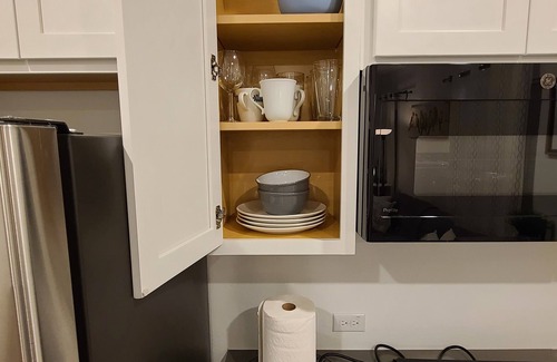 The well-equipped kitchen is a chef's delight, featuring a microwave oven, dishwasher, and ample counter space. Enjoy the convenience of modern appliances in a stylish and functional setting. It is conveniently close to restaurants, groceries, and stores.